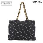 美品 シャネル CHANEL マトラッセ チェーン トート バッグ キャンバス ブラック ホワイト ロゴ キルティング ゴールド 金具 90304541