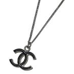 シャネル CHANEL ココマーク ネックレス CC ネックレス シルバーメッキ シルバー ブラック レディース 中古