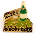 ピンバッジ・シャブリ白ワイン瓶グラスぶどうの房や葉っぱ葡萄酒 CHABLIS ALAIN-GEOFFROY GRAPE FRANCE◆フランス限定ピンズ