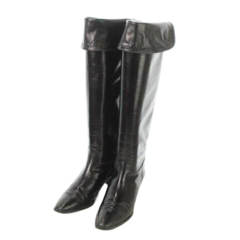 【中古】シャルル ジョルダン CHARLES JOURDAN ロングブーツ ローヒール スクエアトゥ レザー 革 折り返しデザイン 5 22cm 黒 ブラック /AO1 ■GY44 レディース 【ベクトル 古着】 250910
