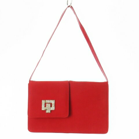 【中古】シャルル ジョルダン CHARLES JOURDAN ハンドバッグ スエード レザー 革 フラップ ラインストーン ビジュー ワンポイント 赤 レッド /CK8 レディース 【ベクトル 古着】 250918