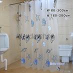 シャワーカーテン 防水防カビ加工 カーテンリング付属 カーテンリング付き 子供部屋 間仕切り 貝とヒトデ スクエア ユニットバス