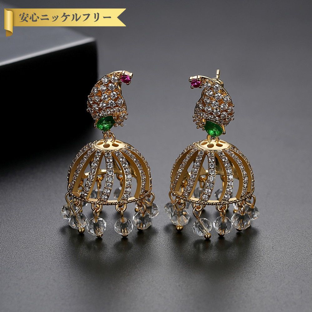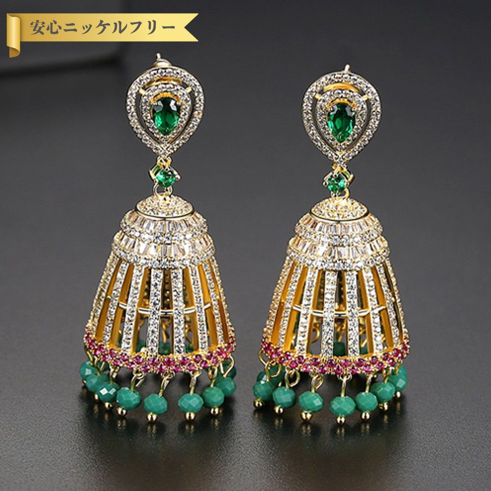 【50%OFFクーポン対象商品!!サンフラワーセールクーポン!先着500名様】 ピアス 両耳用 キュービックジルコニア 真鍮 グリーン イエローゴールド スタッド 揺れる ゆれる ぶら下がり エレガント 大きめ 大ぶり シャンデリア e19053102