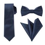 uxcell Allegra K ネクタイ ボウタイ ポケットチーフ 3点セット ナロータイ 6cm 無地 結婚式 ネイビーブルー Free Size