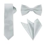 uxcell Allegra K ネクタイ ボウタイ ポケットチーフ 3点セット ナロータイ 6cm 無地 結婚式 グレー Free Size