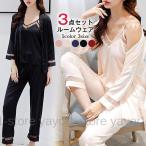 パジャマ レディース ルームウェア 3点セット 部屋着 夏 キャミソール ロングパンツ カーディガン 羽織 ロングパンツ ネグリジェ ナイトウェア サテン