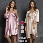 パジャマ ルームウェア 「Jasmine」シルク風さらつやサテンロングキャミワンピース&ガウンセット ルームウェア レディース