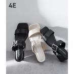 サンダル 靴 4E 幅広 ゆったり ワイド 大きいサイズ レディース スクエアトゥ ベルトサンダル バックル ビジュー ストーン チャンキーヒール (アクアカルダ)