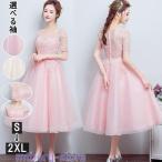 ミモレ丈ドレス結婚式ワンピースパーティードレス袖付き母親結婚式ミモレ丈ピアノ発表会ドレス袖あり大きいサイズ体型カバーピンクシャンパンSMLXL2XL