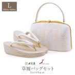草履バッグセット 留袖用 訪問着用 草履バッグ 世美庵 L 白 ホワイト シルバー シャンパンゴールド 菊七宝 帯地 3枚芯 優花緒 日本製 SALE