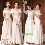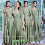 ブライズメイドドレス ロングドレス カラードレス グリーン シャンパン 結婚式 二次会 ブライダル ワンピース サテン パーティードレス 発表会 フォマールドレス