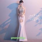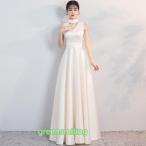 カラードレス シャンパン ホルターネック ファスナー パーティードレス フォーマルドレス ロングドレス マーメイドドレス 結婚式 二次会 ウェディングドレス
