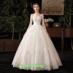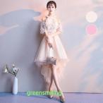 ドレス 大人 ピアノ 発表会 パーティードレス フィッシュテール 五分袖 パフスリーブ 刺〓 ワンピース 体型カバー 母親 結婚式 成人式 同窓会 演奏会