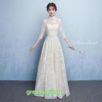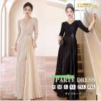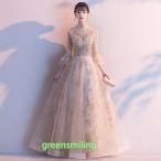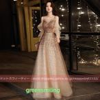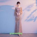 カラードレス 袖付き スパンコール シャンパン カクテルドレス ロングドレス パーティードレス 発表会 演奏会 ステージ コンサート イブニングドレス