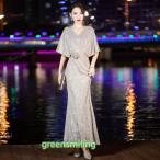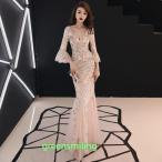 イブニングドレス ロングドレス カラオケドレス シャンパン ステージドレス パーティードレス サイズ指定OKスパンコール衣装 ミセス 発表会 演奏会用ドレス