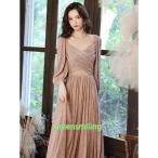 ブライズメイド ドレス ロング丈 シャンパン サテンドレス 袖付き