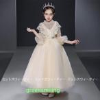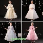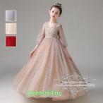 ピアノ発表会 子供ドレス シャンパン ピンク グレー ホワイト ロングドレス キッズドレス 女の子 フォマールドレス ガールズ ワンピース 長袖 チュール 演奏会