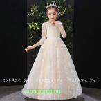 子供ドレス 発表会 フォーマル 結婚式 シャンパン キッズドレス ロングドレス ジュニアドレス 演奏会 ピアノ 舞台 七五三 コンクール 演出 レース ワンピース