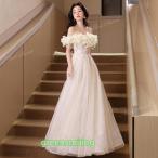 カラードレス カクテルドレス ロングドレス パーティードレス 発表会 演奏会 ステージドレス コンサート イブニングドレス シャンパン 肩ベール ビーズ