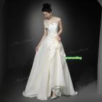 ウェディングドレス ベージュ シャンパン ライトイー フラワー アシンメトリー Aライン 二次会 結婚式 披露宴 前撮り 発表会 花嫁 ウエディングドレス