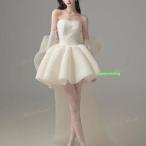 ウェディングドレス ベージュ リボン ミニ ショート丈 ミニドレス レース シャンパン 二次会 結婚式 前撮り 発表会 花嫁 ウエディングドレス ボリューム 蝶結び