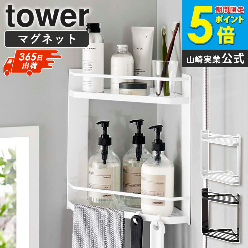 \楽天1位獲得★/ シャンプー置き 山崎実業 マグネットバスルームコーナーラック 2段 tower タワー マグネット シャンプーラック お風呂 シャンプー置き場 大容量 黒 浴室 ボトルラック バスラック コーナーラック バスルーム おしゃれ ホワイト ブラック 6623 6624 ordy