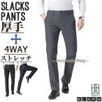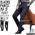 スラックス 裾上げ済み ノータック スリム メンズ ビジネスパンツ 秋冬 厚手 4WAYストレッチ 大きいサイズ 洗える シワになりにくい ウォッシャブル 形態安定