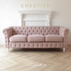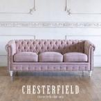 3人掛けソファ チェスターフィールド アンティーク調 ホワイトレッグ シャーベットピンク 布地 ベロア調 CHESTIER チェスティア VC3F237PW