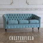 ソファー 三人 3人掛けソファ アンティーク ソファ 三人用ソファ 3人 3人用 三人がけ チェスターフィールド シャーベットブルー 布地 アンティーク調家具 おしゃれ ロマンチック 英国調 イギリス インテリア エレガント VC3F238PW