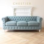 3人掛けソファ チェスターフィールド アンティーク調 ホワイトレッグ シャーベットブルー 布地 ベロア調 CHESTIER チェスティア VC3F238PW
