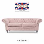 3人掛けソファ チェスターフィールド 英国アンティーク調 ホワイトレッグ シャーベットピンク 布地 ベロア調 エレガント VINCENT VJ3F237W