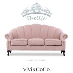 ソファー 3人掛けソファ トリプル アンティーク調 姫系 シェルソファ 貝殻 シャーベットピンク 布地 猫脚 Shellfa シェルファ VS3F237K