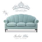 ソファ ソファー 3人掛け 3人掛けソファ 3人 トリプルソファ アンティーク ソファ アンティーク調 ロマンチック 姫系ソファ シェルソファ 貝殻 シャーベットブルー 布地 おしゃれ リッチ 猫脚 コンパクト ロココ Shellfa シェルファ VS3F238K