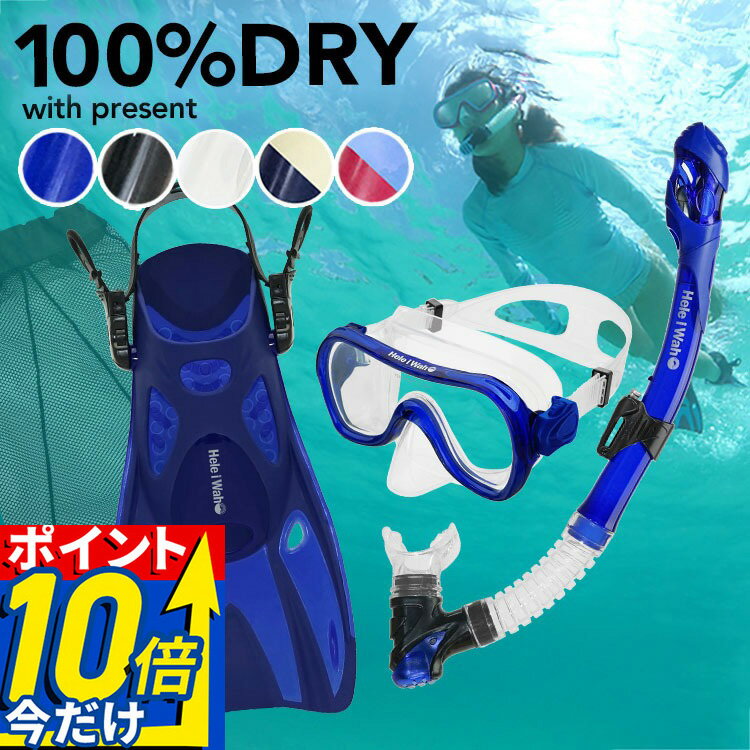 【楽天スーパーSALE対象】 シュノーケル セット 3点セット 100% ドライスノーケル シュノーケリングセット マスク フィン 素潜り スノーケリング HeleiWaho ヘレイワホ Kalama 3点 大人 水中メガネ ゴーグル 足ヒレ メッシュバッグ プレゼント 夏休み 海水浴