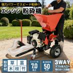 エンジン粉砕機 粉砕機 エンジン式 最大粉砕径50mm 7.0馬力 3WAY ダブル 投入口 吸引ホース 4サイクル ガーデン シュレッダー 強力 パワフル 竹 枝 材木 木材 草