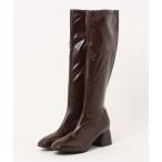 ブーツ PUレザースクエアトゥロングブーツ レディース