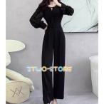パーティードレス かっこいいパンツドレス 結婚式 お呼ばれドレス パンツ 袖あり 長袖 オールインワン ジャンプスーツ ワイドパンツ ハイウエスト 無地 シンプル
