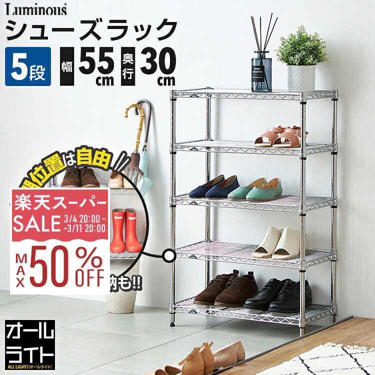 【10%OFF★3/4 20時〜】ルミナス ライト シューズラック 5段 幅55 奥行30 スリム 薄型 靴棚 下駄箱 靴箱 シューズボックス 靴入れ 靴 シューズ ブーツ スニーカー 玄関 組み立て 省スペース おしゃれ ラック 棚 スチールラック 収納 頑丈 可動棚 引っ掛け IHT5530-5