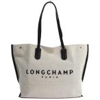 極美品△Longchamp ロンシャン ROSEAU ESSENTIA キャンバス レザー使い ショッピングバッグ トートバッグ ベージュ ブラック フランス製