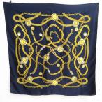 #ae ショパール Chopard シルク スカーフ 紺 黄色 マルチ 大判 絹 100% 時計 チェーン ヴィンテージ イタリア製 イタリー 946089 k01