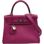 エルメス HERMES ケリー25 外縫い D刻 ローズパープル シルバー金具 スイフト ショルダーバッグ レディース 中古