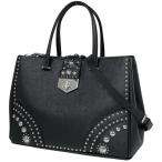 プラダ PRADA ロゴ トートバッグ スタッズ 2WAY ショルダーバッグ ハンドバッグ トートバッグ サフィアーノレザー ネロ(ブラック) B2752M レディース 中古