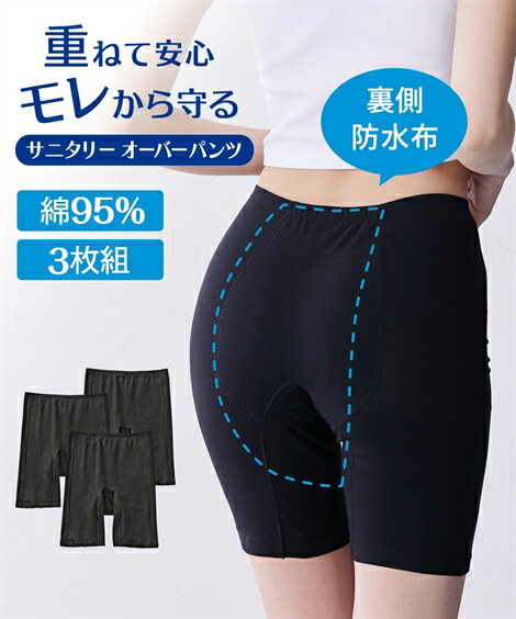【店内全品対象★25%OFFクーポン配布中★先着1,500名限定 11/20 20時開始】ショーツ サニタリー 生理用 大きいサイズ レディース 抗菌防臭 加工・むれにくい 綿混 ストレッチ 3分丈オーバーサニタリー パンツ 3枚組 4L/5L/6L 女性 インナー パンティ ニッセン nissen