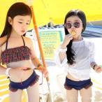 水着 レースパフトップス×ハイウエストビキニ上下2点セット「キッズ/ジュニア水着」(130cm〜150cm) キッズ 子供 女の子