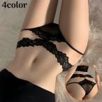 送料無料 ショーツ ヒップハンガー ローライズ レディース パンツ パンティ 単品 下着 シースルー レース ランジェリー 女性用 花柄 ヒモ 紐 ゴージャス エレガント セクシー 黒