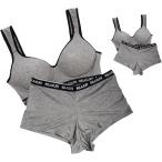 グレー/黒 【M/L】 Champion チャンピオン スポブラセット スポーツブラジャー+一分丈ショーツ カップ付き 綿混 p0587