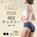 サニタリーショーツ レギュラー レディース 綿混 羽根つき対応 生理用ショーツ 生理パンツ 一分丈 昼用 夜用 無地 羽つき対応 ウイング 10L 11L 12L 3枚