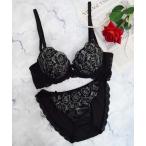 ブラジャー ショーツセット 「美谷間&丸胸を叶える!ナチュ盛りメイクブラ♪」上下セット/A~D/脇高モノクロラメローズ刺繍
