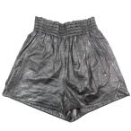 未使用 Christian Dior クリスチャンディオール ラムレザー ワイド ショートパンツ ウエストゴム ショーツ ボトムス ブラック XS レディース 古着 中古