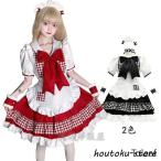 ロリータ メイド服 レディース メイド コスチューム 半袖 膝丈 ショート丈 ワンピース ロリータ服 裾フリル リボン ハート 十字架 可愛い コスプレ衣